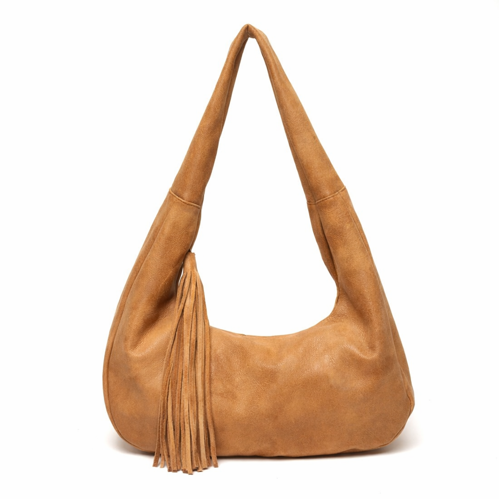 Bella Shoulder Bag with tassel Zipper Puller and Top Zipper Closure.