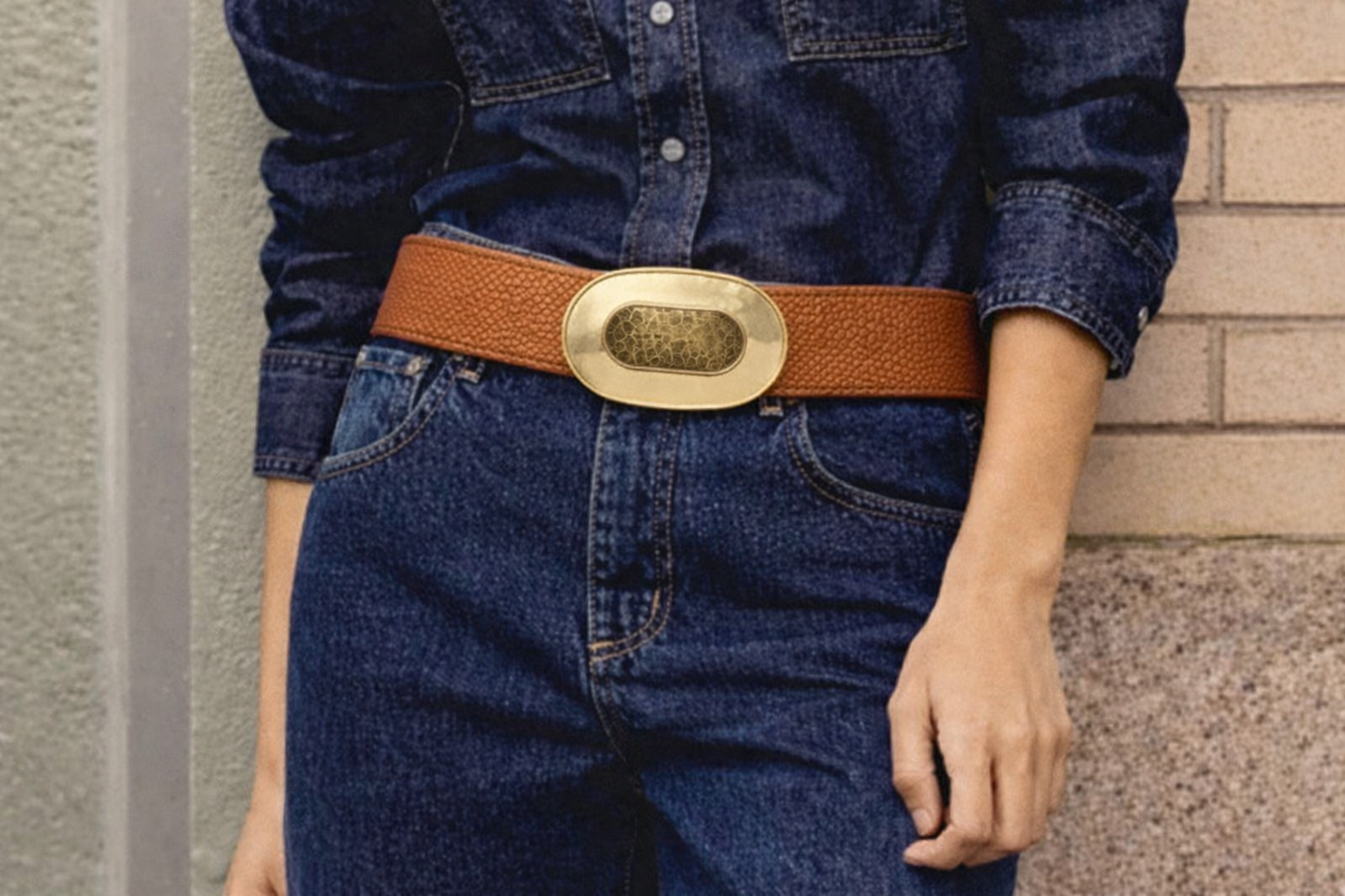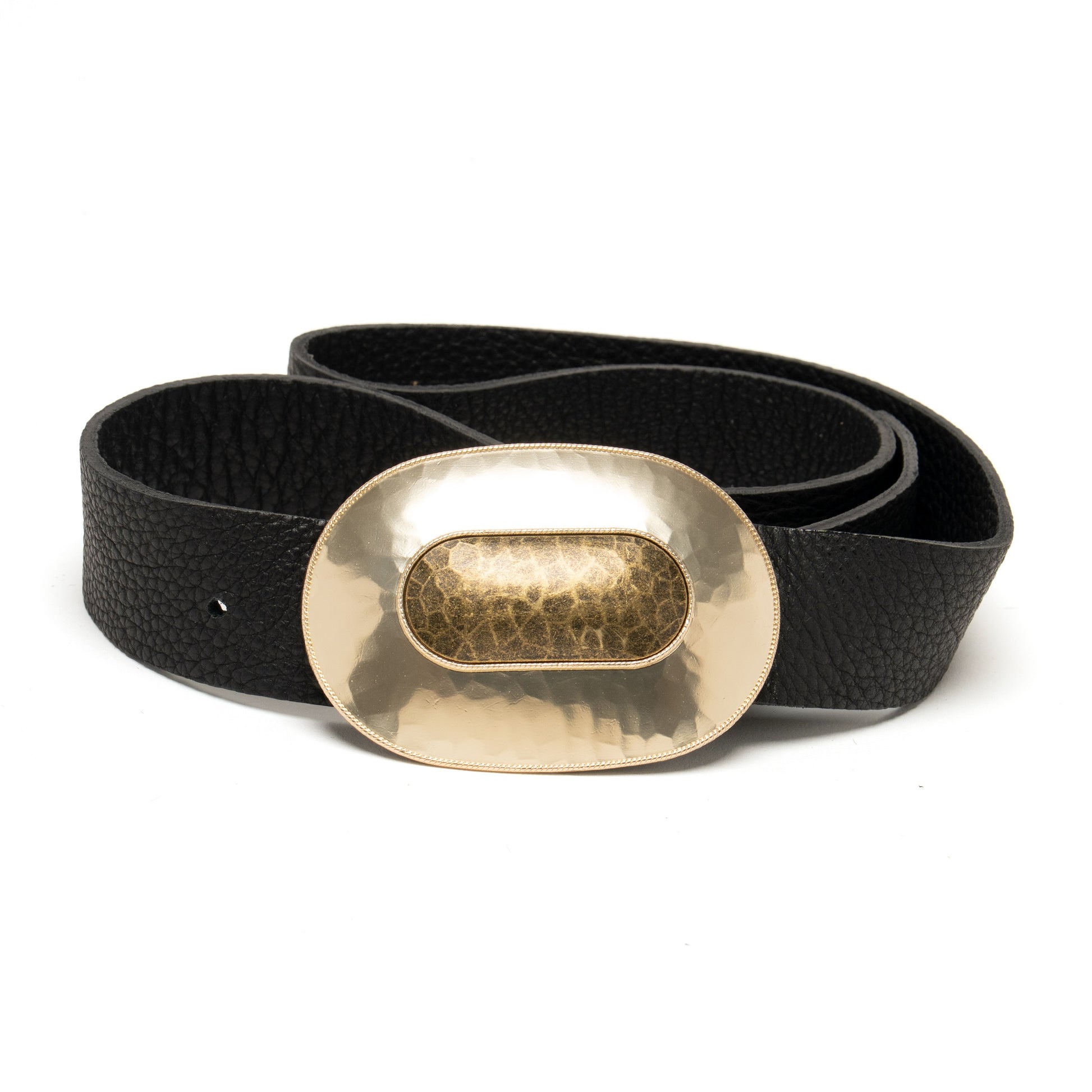 The Camilla Belt features an oval gold tone buckle that adds a bold , yet refined look.
